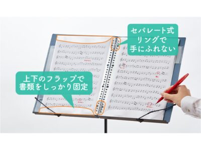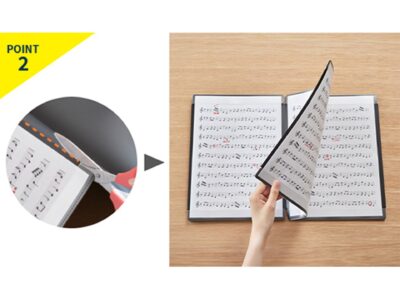 楽譜の枚数に合わせてカットして差し込めば、簡単に製本が完了します。