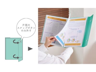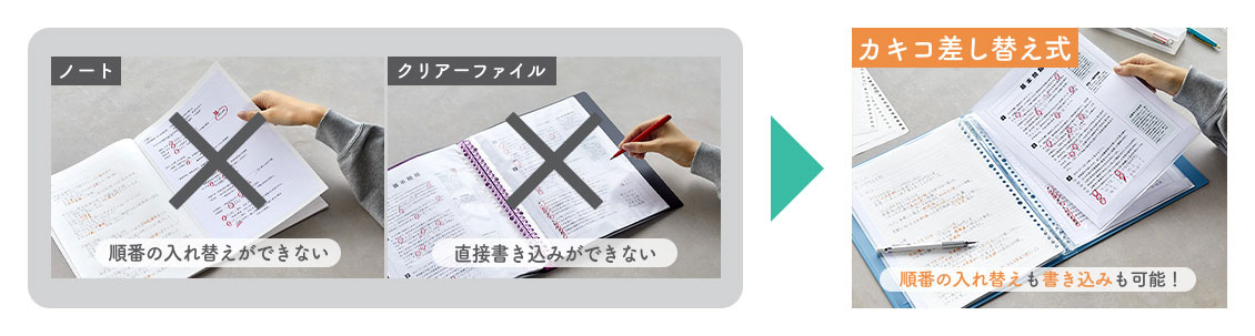 ノートとファイルが一冊になるから、煩わしい紙の出し入れた、切り貼りが不要。