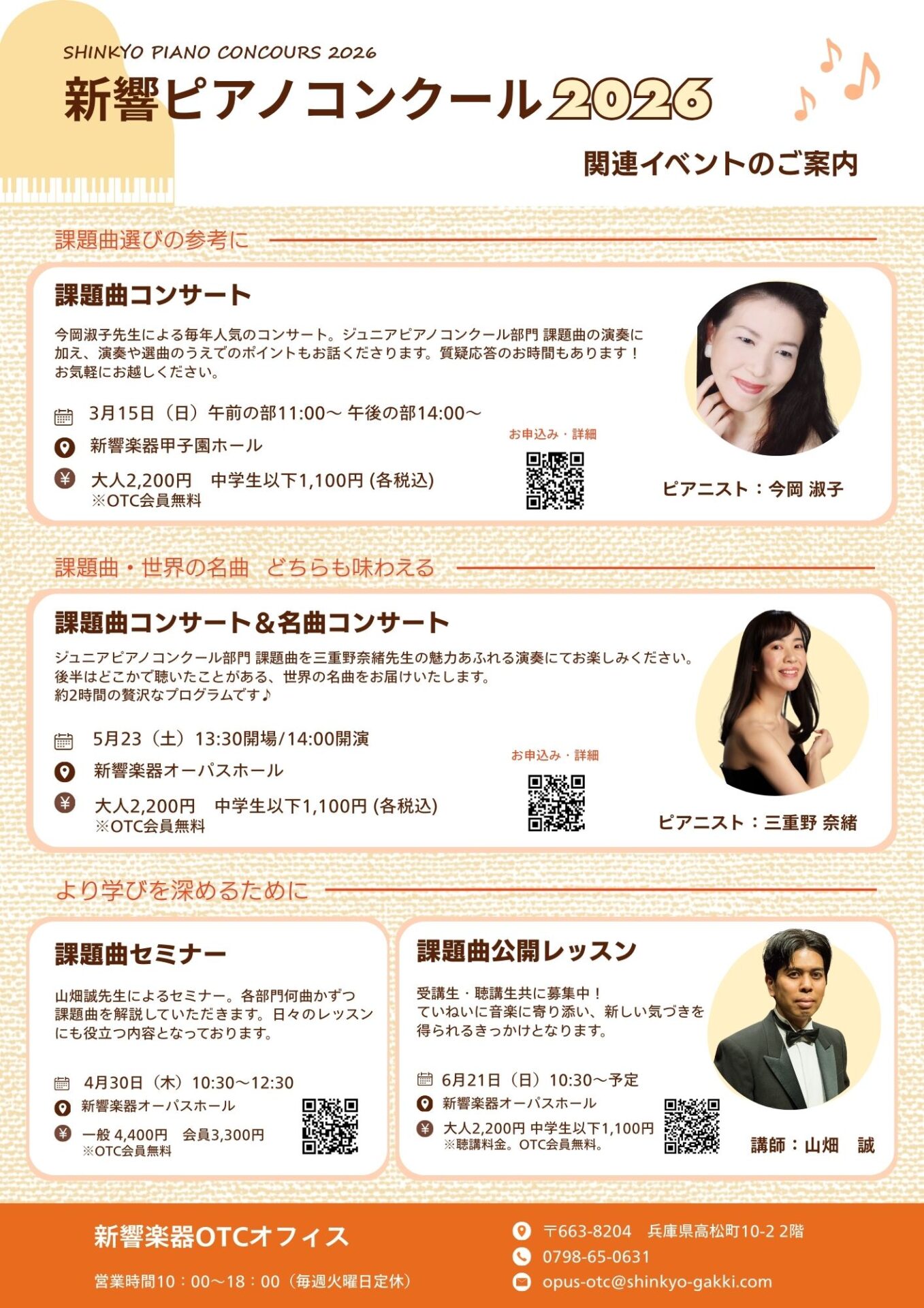 | 会場 | 新響楽器 西宮北口オーパス店 3Fオーパスホール 〒663−8204 兵庫県西宮市高松町10−2 |