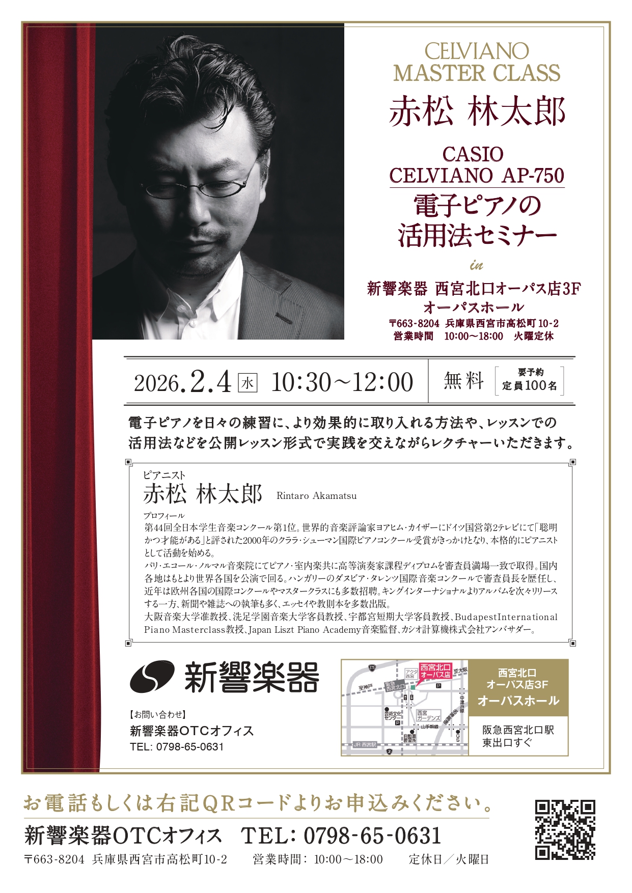 会場 | 新響楽器 西宮北口オーパス店 3Fオーパスホール 〒663−8204 兵庫県西宮市高松町10−2 |