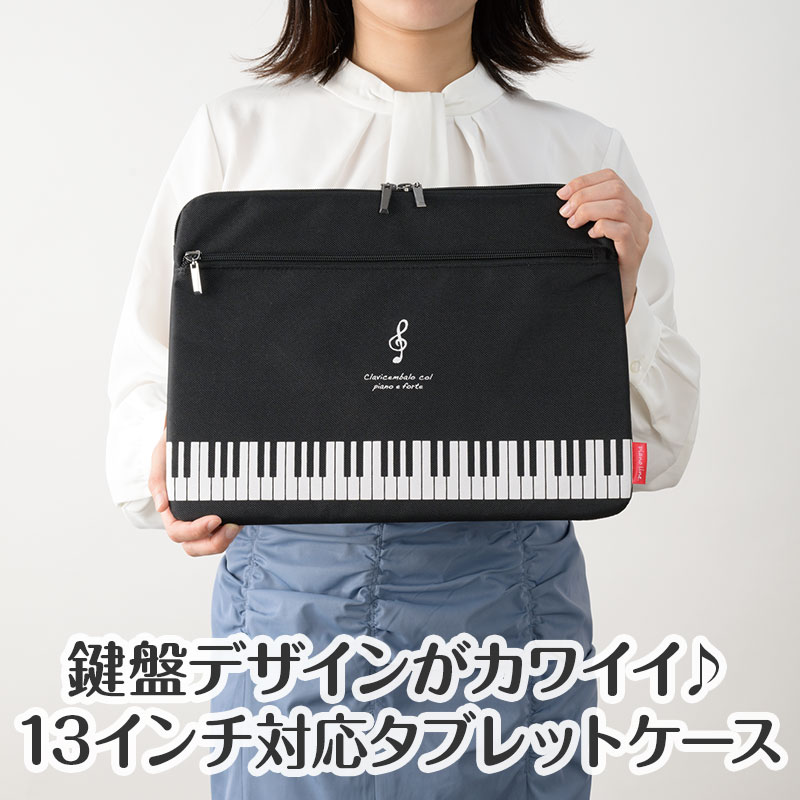 落ち着いた鍵盤デザインにト音記号をあしらった、スタイリッシュなPC&タブレットケースです。大きなト音記号の中に楽譜が描かれたグラーヴェの人気のデザイン。楽譜を見るときにタブレットを活用する方や、通勤・通学で持ち歩きたい方にぴったり♪13インチまで対応しているので、ノートPCやタブレットをスマートに収納できます。開閉しやすいWファスナーは黒鍵のデザインこういった細かいこだわりもPianolineシリーズの大きな魅力です♡