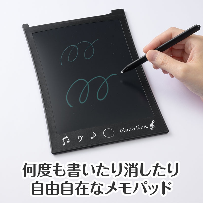 レッスン中のちょっとしたメモにぴったりの8.5インチ電子メモパッドです。専用ペン付きで、筆圧に応じて線の太さが変化。まるで本物のペンのような書き心地を楽しめます。付箋感覚でサッと書けてペーパーレス。環境にもやさしく、何度でも繰り返し使えます。