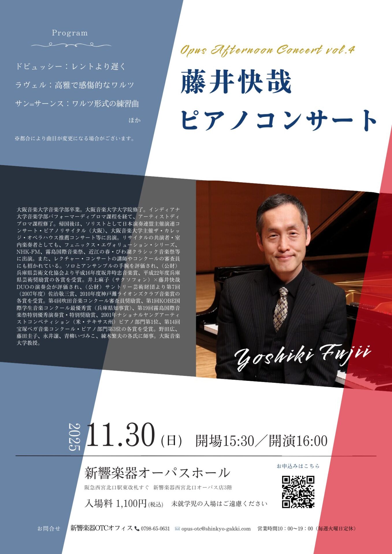 ♪コンサートのご案内 Opus Afternoon Concert vol.4 藤井快哉ピアノコンサート