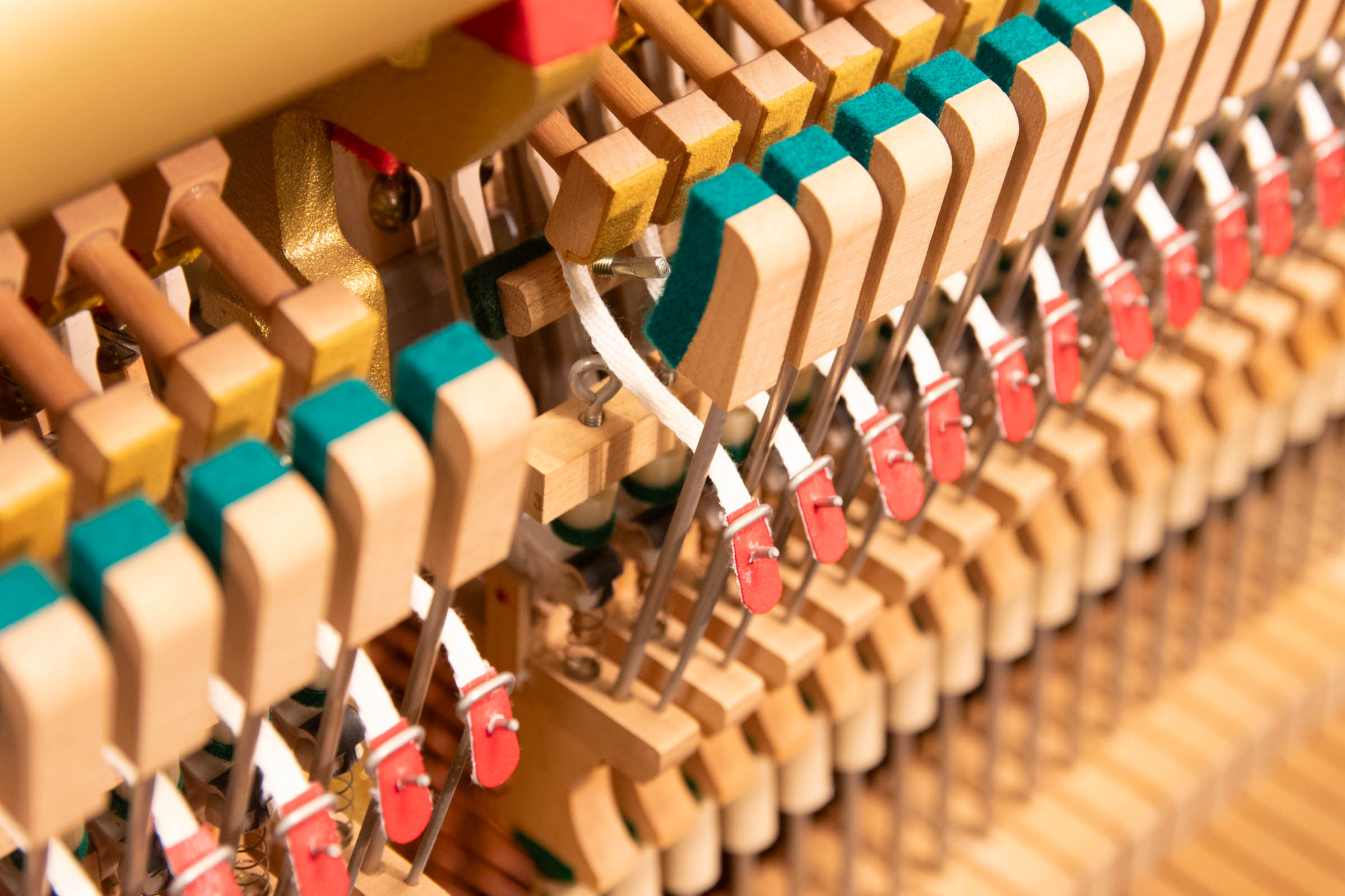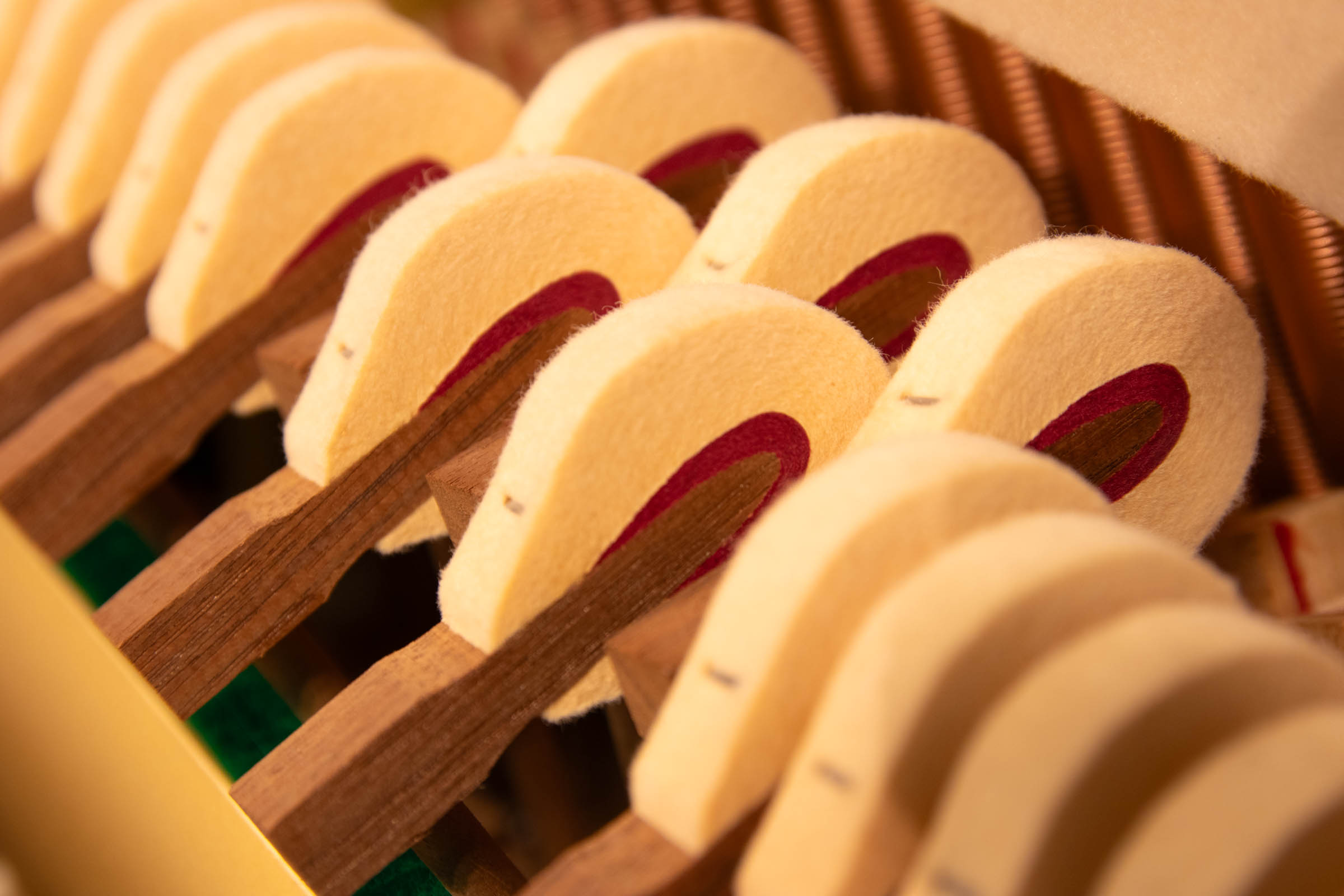 新響楽器では、長年にわたり専任技術者によるピアノ再生事業を行っています。2009年には尼崎に自社工房を設立し、お客様からお譲りいただいたピアノを一台一台丁寧に整備。外装の美しさはもちろん、鍵盤調整、内部消耗品の交換、整音・整調まで徹底的に行い、音や弾き心地にまでこだわった、安心して長くお使いいただける一台へと仕上げています。