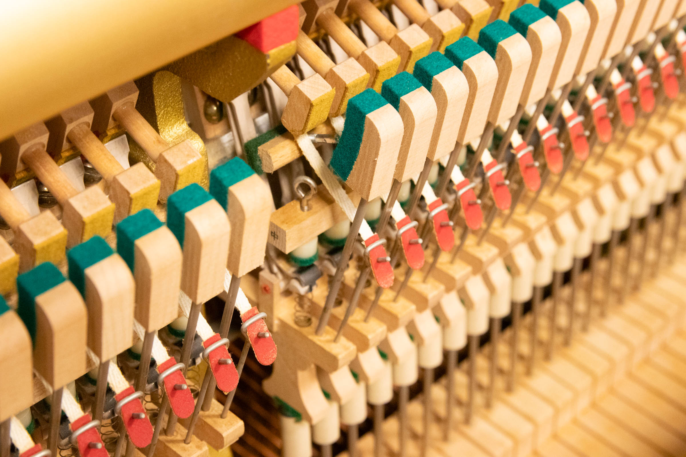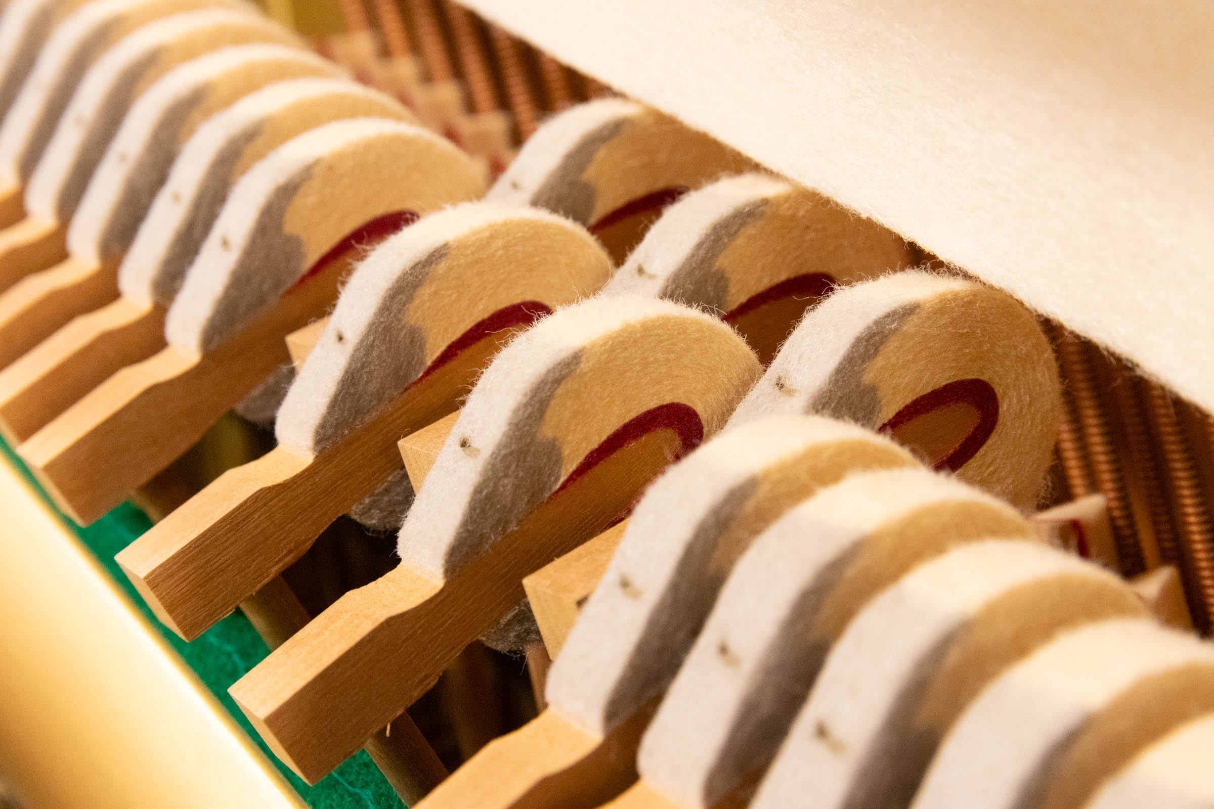 自社工房「ピアノ工房関西」では、熟練した技術者が内外装を入念に手入れし、中古ピアノを再生。外装の美しさはもちろん、何千というパーツを揃え、鍵盤の調整、内部消耗品の交換・整音・調整の他、ピアノの弾き心地にまでこだわっています。当工房ではこれを「リフレッシュピアノ」と名付けております。ご購入いただいたピアノの保証期間は「安心の3年間保証」です。 ※原則として保証期間中1年に1回、当工房が指定する調律師により定期調律を実施して頂く事が必要です。また、消音(サイレント)機能付きピアノ等の場合、一部商品を除き電気パーツの保証期間は1年間となります。