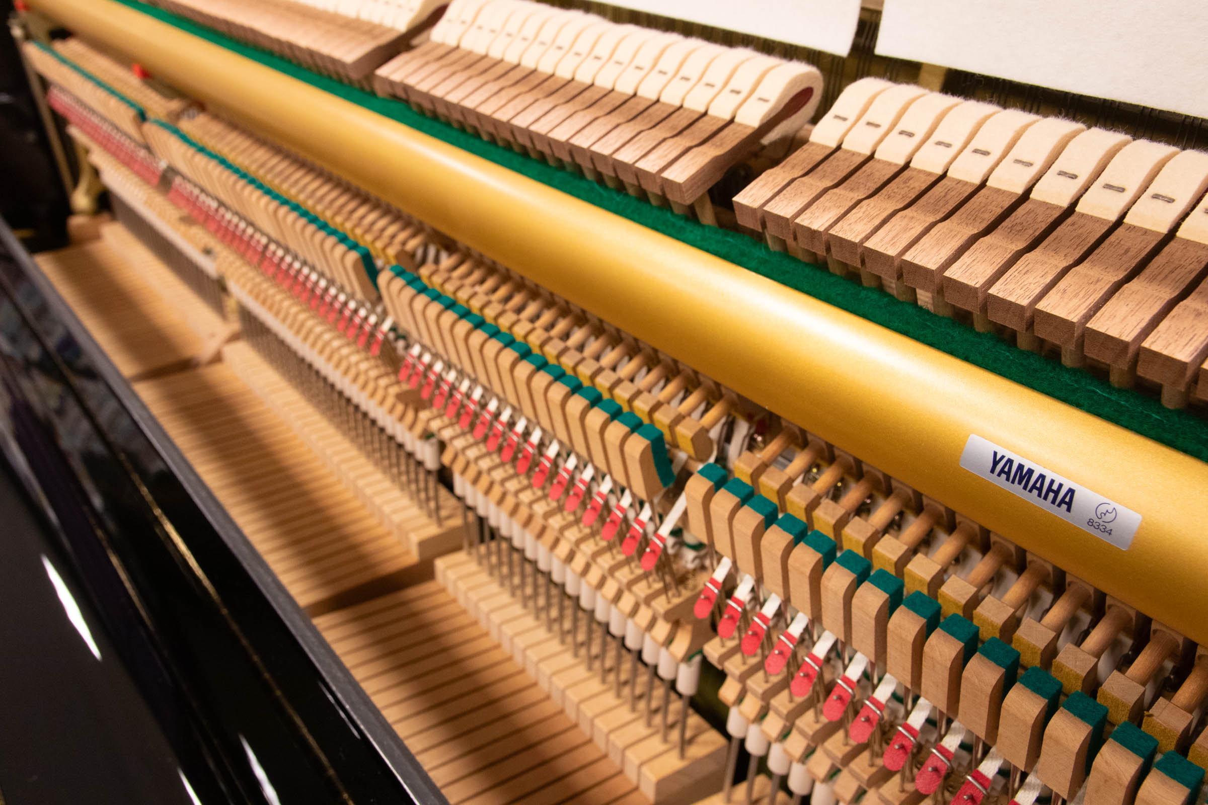 現行YUS5の一世代前にあたる2001年製と高年式のハイグレードモデルYU50SBです。グランドピアノと同じ大型譜面台を装備し、上級機種ならではの仕様である「ニューアイボリーⅡ(白鍵)」「黒檀調天然木(黒鍵)」を採用し、指に吸い付くようなタッチ感を実現しています。グランドピアノ用ハンマー、グランドピアノと同様の効果が得られる響板支持構造により、アップライトピアノとして最高の音質と表現力を持った機種です。